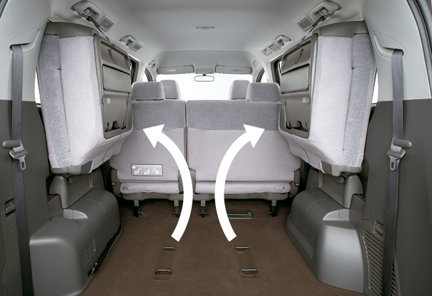 もうひとつ、3列目シートの跳ね上げも簡単に行うことが可能で荷室スペースを最大限広く活用することが出来ます。