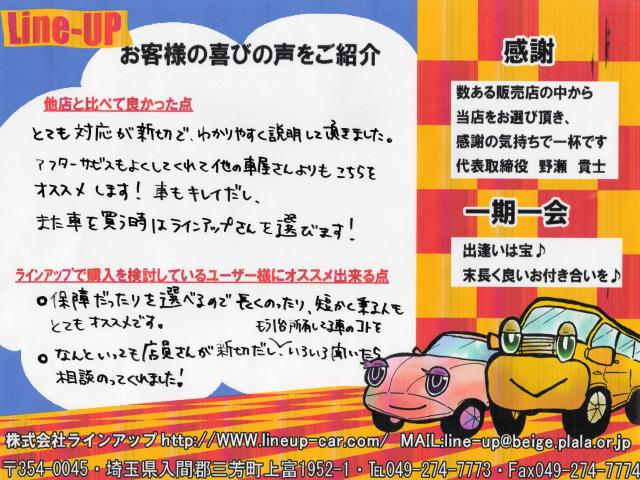 車もキレイだし、また車を買うと時はラインアップさんを選びます!!